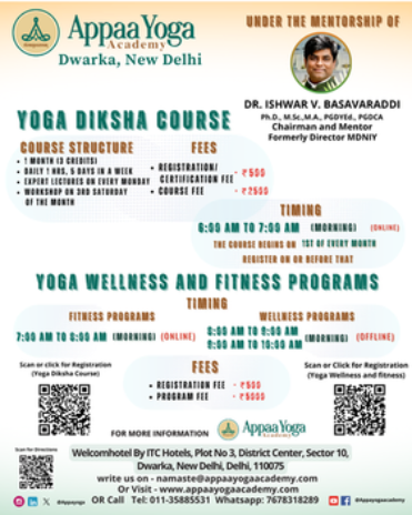 6. Yoga Diksha a 50 Hrs. Two months duration Foundation course in Yoga for beginers (online mode) Rs. 6000 per person per course