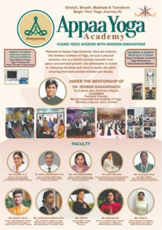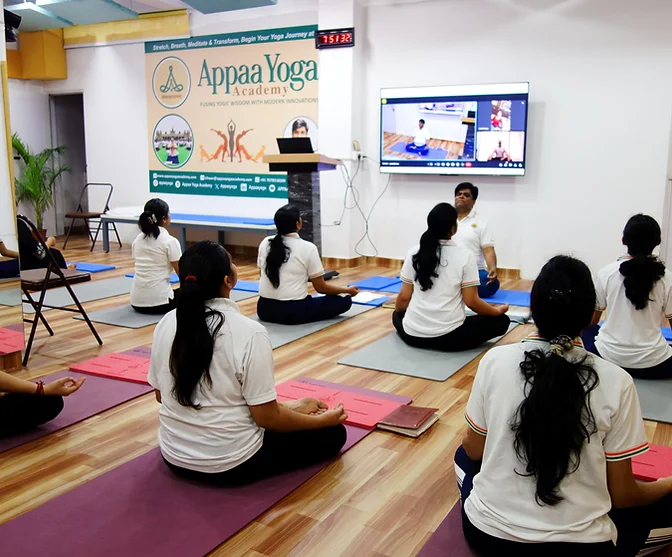 Welcome to Appaa Yoga Academy! Our mission is to become a globally acclaimed institution by integrating ancient yoga wisdom with modern technology. We aim to foster holistic health and well-being, empowering individuals to lead balanced, healthy, and happy lives.