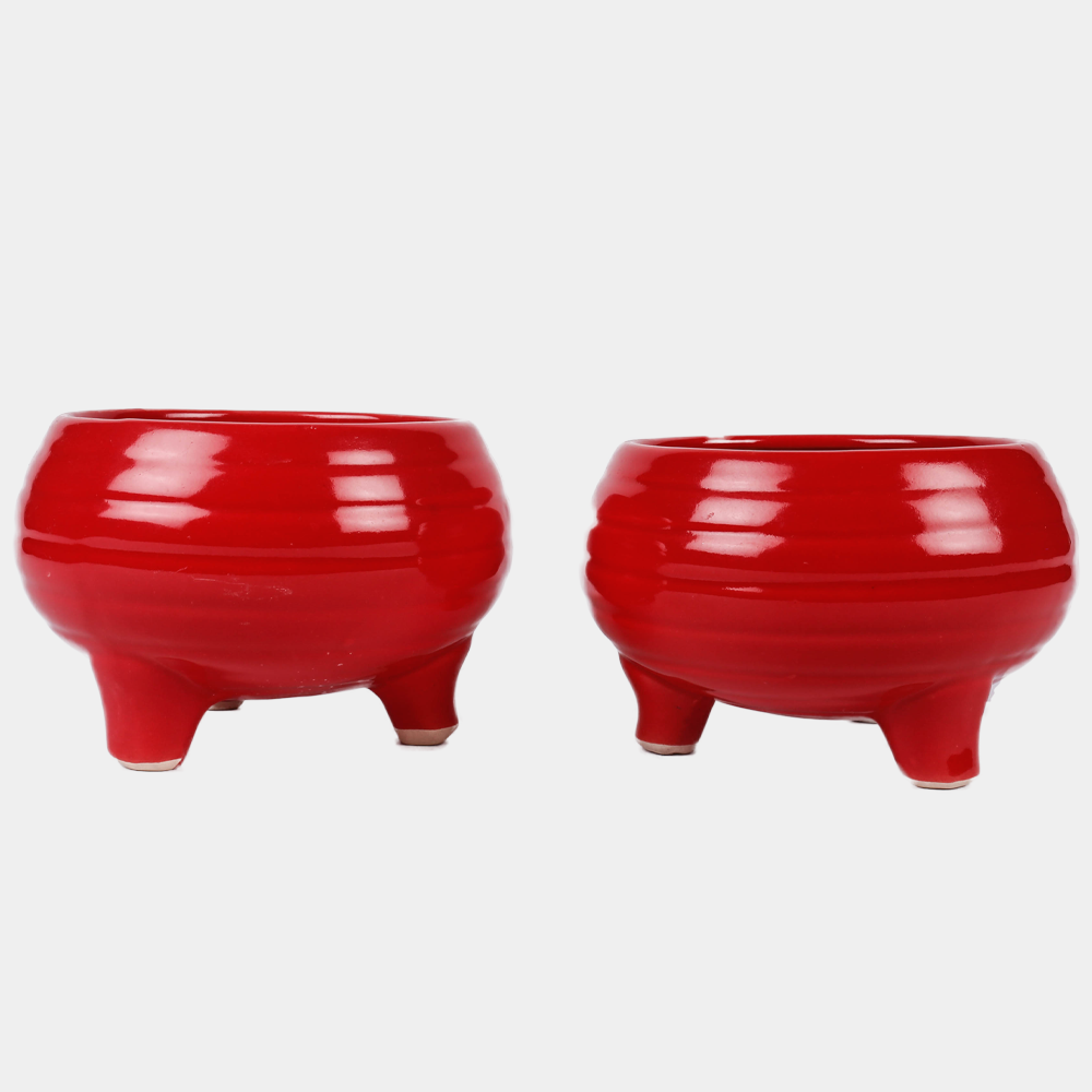 3 leg red ring ceramic high gloss pot 5 inch height n 6 inch diameter