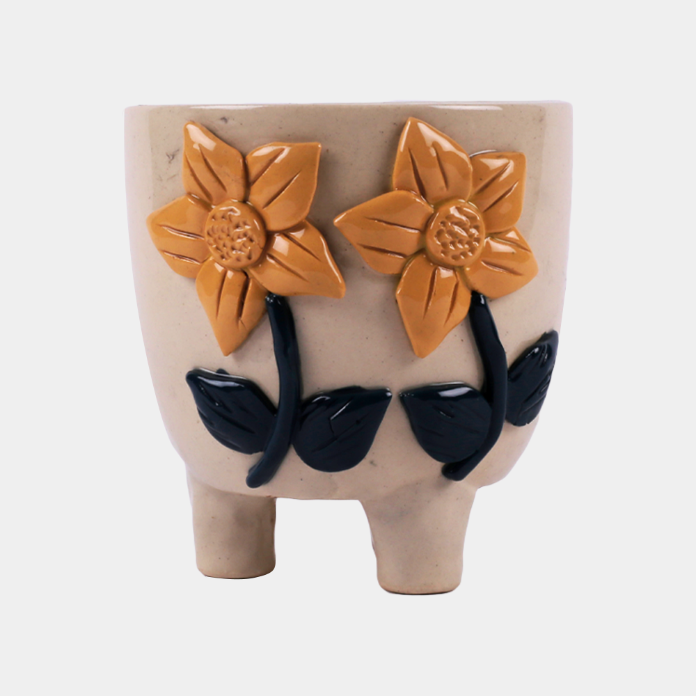 Beige base with yellow flower, 5 inch height n 5 inch diameter