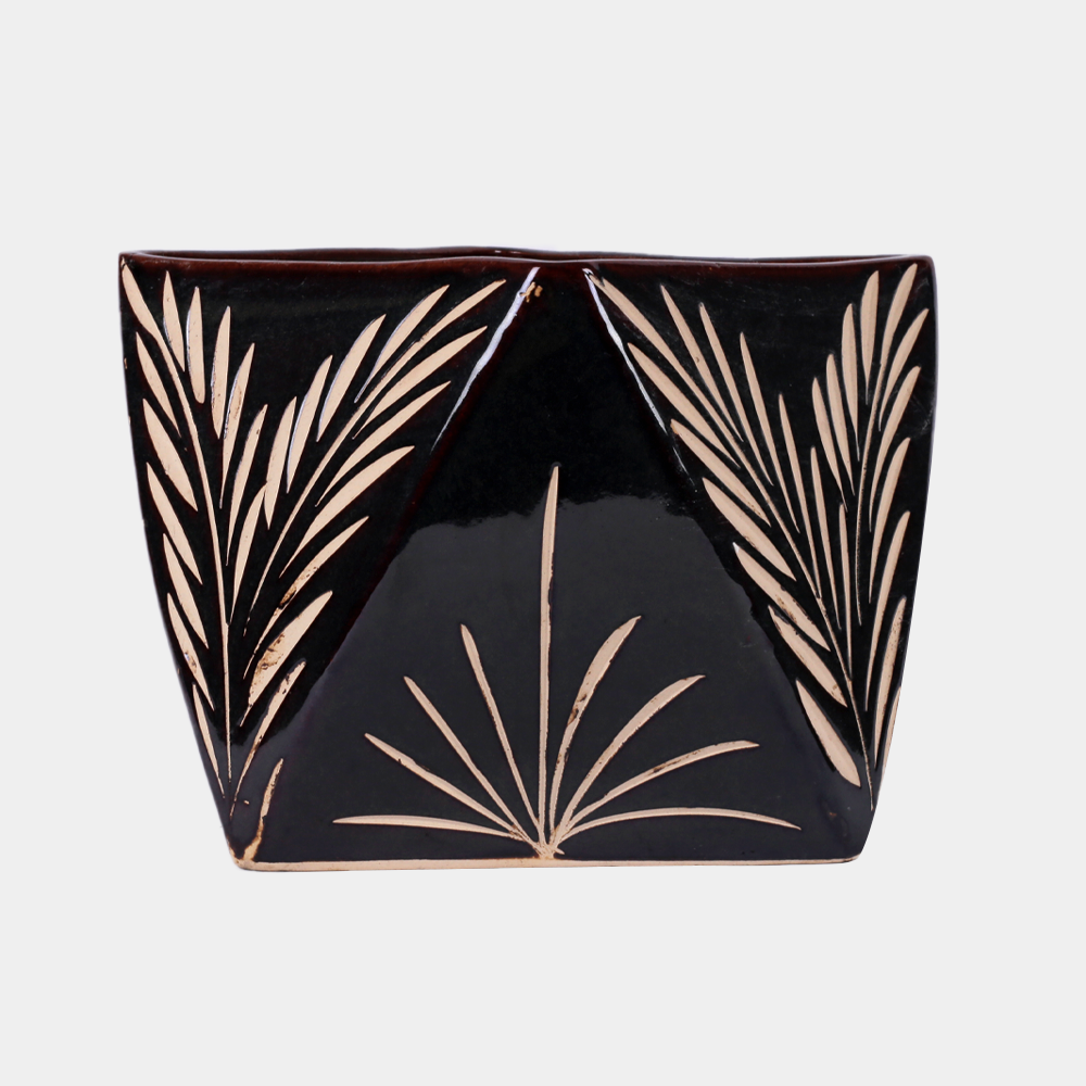 Diamond cut brown with white engraved pattern,8 inch height n 8 inch diameter