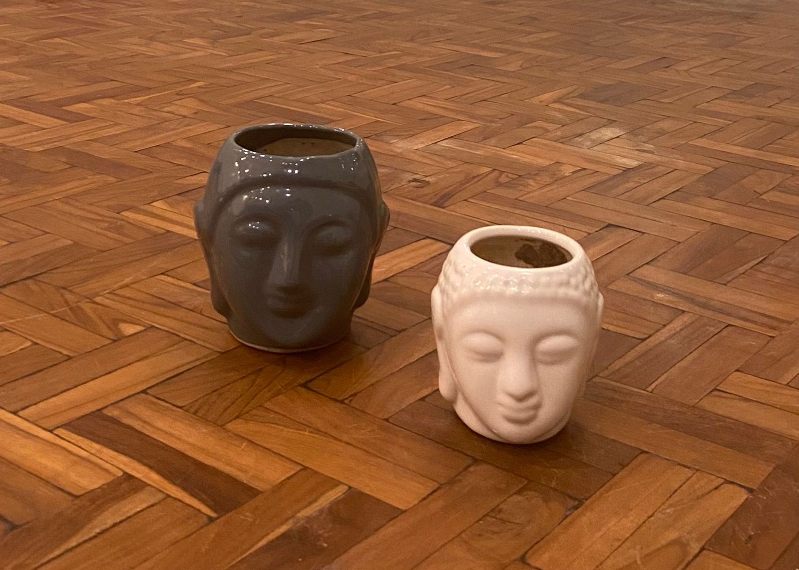 Buddha ceramic planter, grey Buddha: 5inch hat nd 4inch diameter, white Buddha:5inch height n 3inch diameter.