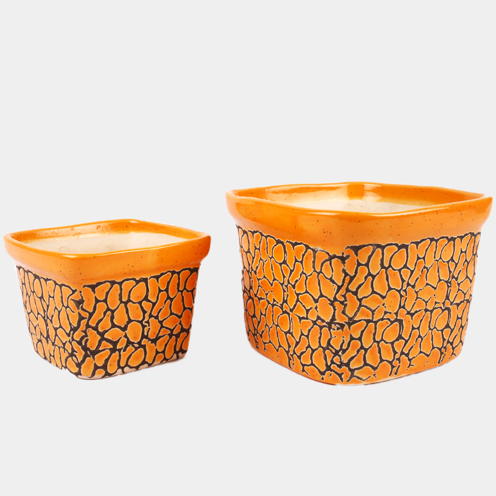 Zigzag pattern in yellow n red, big 5 Inch height n 6 inch diameter n small 4 Inch height n 4 inch diameter